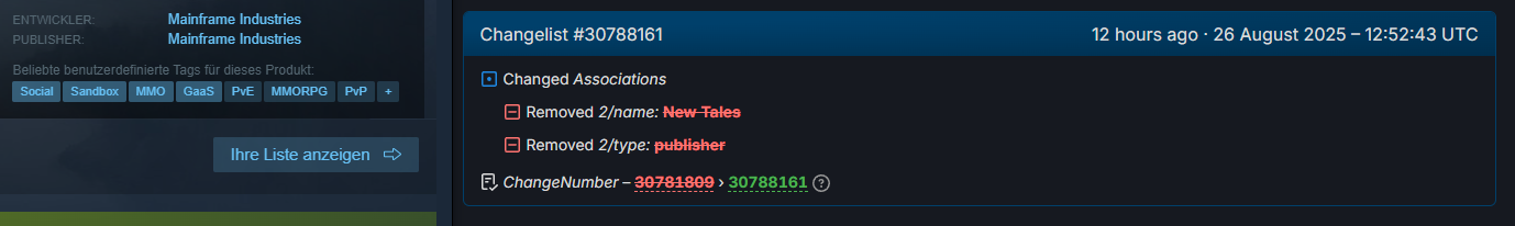 Seit dem 26.08.2025 ist New Tales als Publisher von der Pax Dei Steam Seite verschwunden.