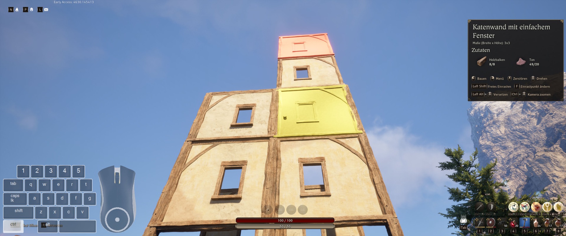 Vorab: Beim Bauen werden Farben angezeigt. Von Grün bis Rot wird einem so bereits gezeigt, ob das Platzieren eines Objektes klappt und wie stabil es ist.